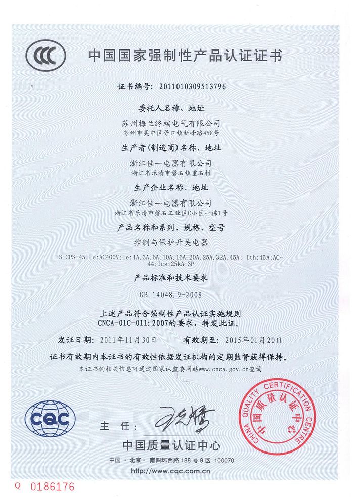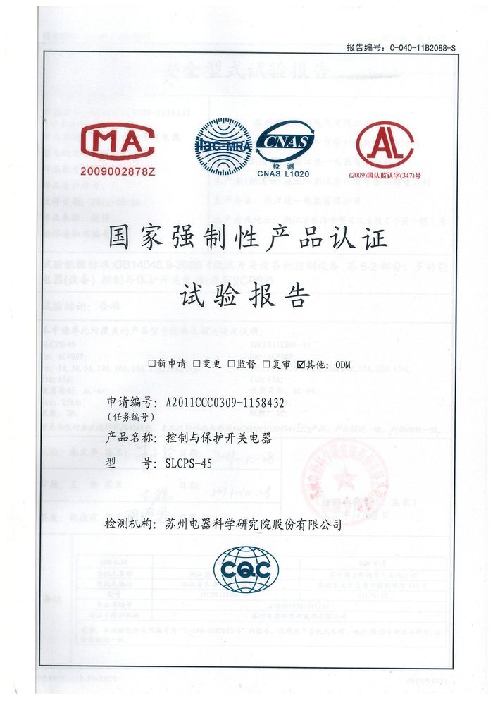 SLCPS-45控制與保護開關資質(zhì)證書