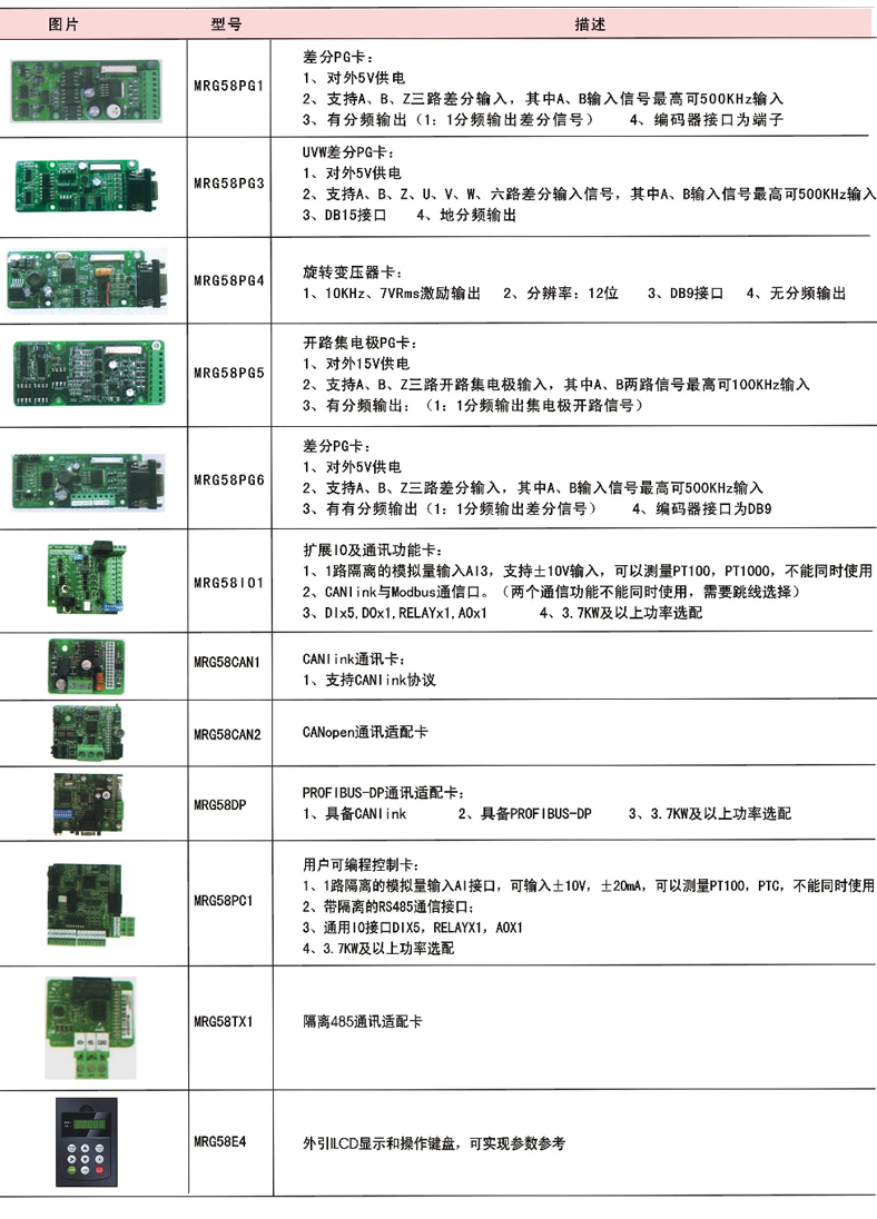 | 選配件 | 多功能輸入輸出擴(kuò)展卡、制動組件、通訊卡、PG卡、用戶可編程卡等 | |