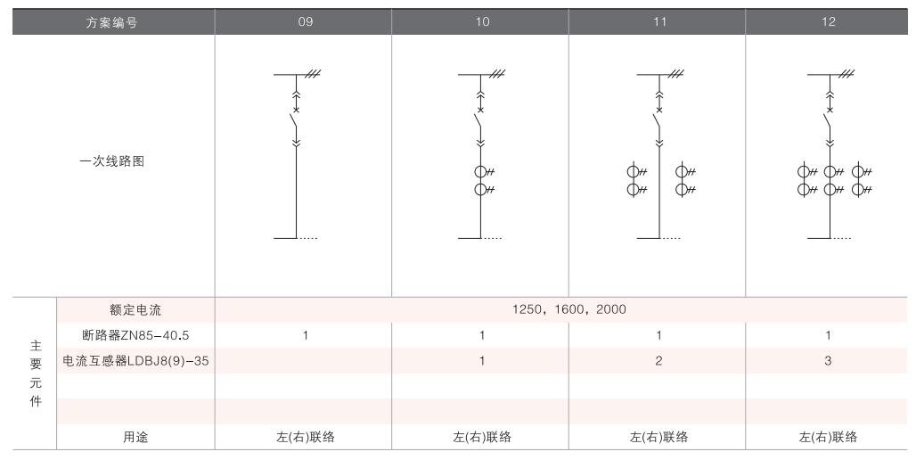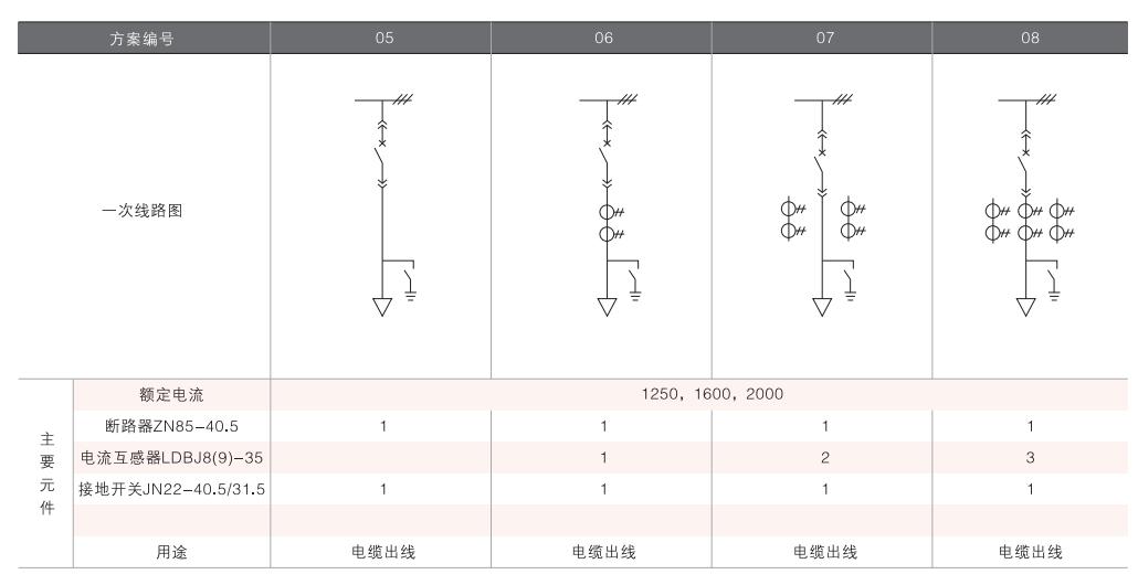 開(kāi)關(guān)柜的一次接線(xiàn)方案有27個(gè)常用典型方案,能滿(mǎn)足用戶(hù)電纜進(jìn)出線(xiàn)、架空進(jìn)出線(xiàn),聯(lián)絡(luò)級(jí)測(cè)量、保護(hù)等的需要,若有不同與現(xiàn)有方案的其他方案的需要,請(qǐng)與廠方協(xié)商。